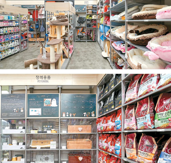 한편, 쇼핑몰로서는 최초로 롯데마트가 업계 최초로 반려동물 장례 서비스를 시작해 `요람에서 무덤까지‘란 슬로건으로 서울 은평점 등 3개점에서 진행하고 있다. 또 롯데마트는 반려동물용품과 관련 서비스를 전문적으로 운영하는 전문매장 `펫가든`을 통해 단순 상품 판매를 넘어 차별화된 이색 서비스로 정착시키고 있다. 약 1500개 제품이 있어 기존 반려동물용품 매장보다 2배가량 다양하고 전문적인 상품 구색을 갖췄으며 동물병원에 내과·외과 등 동물 전문의가 배치돼 간단한 치료부터 전문적인 수술까지 가능할 뿐 아니라 미용실은 물론이고 반려동물 전용 호텔 서비스도 운영 중이다.비식품류에서는 반려동물에게 놀이의 즐거움과 스트레스 해소에 도움을 줄 수 있는 노즈워크 장난감, 보호자와 교감도를 올려주는 홈 스파·마사지 케어, 반려동물만의 개성을 드러낼 수 있는 디자인 의류와 셀프 미용 상품을 출시할 예정이다. 모래, 패드와 같은 생필품은 PB(자체 브랜드) 리뉴얼을 준비 중이며, 가성비를 강조한 `온리프라이스` 상품도 추가로 출시할 계획이다. 안소현 롯데마트 라이프스타일팀 MD(상품기획자)는 "반려동물 시장이 성숙기에 접어들며 식품군과 비식품군 모두에서 이들의 건강한 식생활과 스트레스를 줄여줄 수 있는 상품군 수요가 늘고 있다"며 "반려동물 건강을 최우선 가치로 기존 PB 상품에 대한 리뉴얼을 진행하고, 가성비를 강조한 신규 PB도 추가로 내놓을 예정"이라고 말했다.
