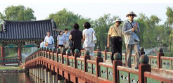 ▶주몽 등 드라마 인기로 공주·부여 즐겨 찾아… 명동 쇼핑 관광객은 작년의 절반 수준▶지난 1일 오후 1시쯤 충남 부여군 백제역사문화관의 탑들을 둘러보던 60대 일본인 부부가 후시기다(신기하다)를 연발했다. 남편 요시다 요(吉田羊·65)씨는 일본 아스카 문화의 뿌리인 백제 불교문화를 느끼고 싶어서 왔다며 일본에도 백제시대 탑과 비슷한 탑들이 많다고 말했다.전날 만난 40대 일본인 여성 관광객은 백제문화에 관심이 많아 혼자 왔다며 오늘은 부여를 둘러보고 내일은 공주로 갈 계획이라고 했다. 백제역사문화관에는 올 1~7월 일본인 관광객 316명이 방문했다. 작년 같은 기간 61명의 5배가 넘는다. 문화관 앞에는 백제시대 궁궐·유적을 재현한 리조트가 개장을 앞두고 있다.부여의 백제 연못 궁남지(宮南池) 옆에서 관광객 초상화를 그려주는 이한규(52)씨는 작년에는 일본인 관광객이 거의 안 보였는데, 올해는 하루 20명씩은 오는 것 같다고 말했다. 궁남지는 일본 역사책 일본서기에 백제 최초의 인공 정원이자 일본 조경의 원류(源流)로 기록돼 있다.국내 최대 해외 손님인 일본 관광객들의 한국 여행 트렌드가 바뀌고 있다. 종전에는 단체 관광으로 와서 엔고를 이용한 쇼핑을 주로