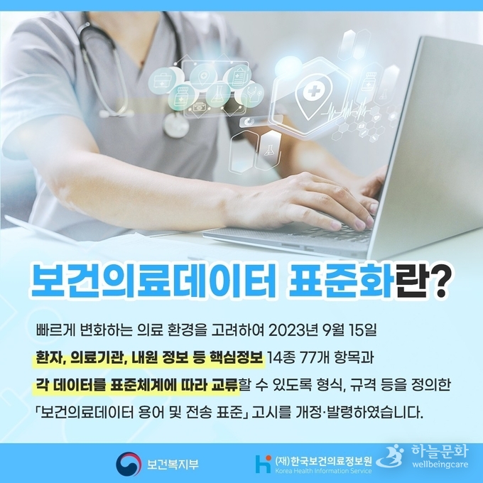 보건복지부(장관 정은경)는 보건의료데이터 교류·활용 시 핵심이 되는 항목과 용어를 규정하고, 전송 방식을 정의한 「보건의료데이터 용어 및 전송 표준」고시를 개정 시행했다고 밝혔다.