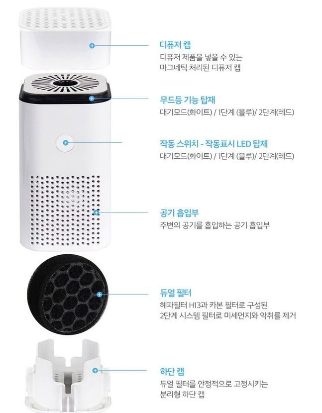 카본필터 + 헤파필터 H13로 구성된 듀얼 필터
