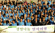 자신의 몸 일부를 기꺼이 희생한 사람들, 그리고 이들의 희생으로 새 삶을 살게 된 사람들이 모여 함께 감동의 기차여행을 떠났다. 신장기증인과 이식인이 함께 기차를 타고 ‘가을 소풍’을 떠나는 것. 희망과 나눔을 상징하는 파란색 티셔츠를 함께 입은 이들의 표정은 청명한 햇살만큼이나 눈부셨다. 경제난에 금융위기, 하루하루 각박해져만 가는 세상살이를 나눔과 희생에서 해답을 찾는 이들의 모습은 그 누구보다 해맑고 행복해 보인다. 아침 7시가 채 되기 전부터 서울 용산역 앞은 파란색 티셔츠를 입은 사람들로 가득찼다. 18일 철도의 날을 맞아 사랑의장기기증운동본부가 기획한 기차여행에 참가하기 위해 모인 신장 기증인과 이식인들이다. 입가에 웃음이 가시지 않는 함순애(54ㆍ주부) 씨는 “중 3때 뇌막염으로 수술을 받을 당시 ‘날 살려주면 다른 사람의 생명을 살리는 일에 인생을 보내겠노라’ 기도했었다”며 “가족들의 반대가 극심했지만 마침내 설득해 골수와 신장을 기증하게 됐다”고 웃으며 말했다.삶에서 가장 큰 보람을 느꼈다고 말하는 그의 표정 속에는 감출 수 없는 행복이 묻어나왔다. 최고령 신장 기증인 권재만(76), 김교순(72) 부부도 있다. 기증 수술을 한 지 16년이