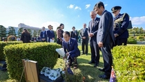 정치보다 의리, APEC 참석 호주총리 유엔기념공원 참배 10월 29일(수), APEC 정상회의 참석을 위해 방한한 앤서니 앨버니지(Anthony Albanese) 호주 총리가 권오을 국가보훈부 장관과 함께 부산 유엔기념공원을 방문해 호주 참전기념비와 묘역을 참배했다. [작성자 국가보훈부]