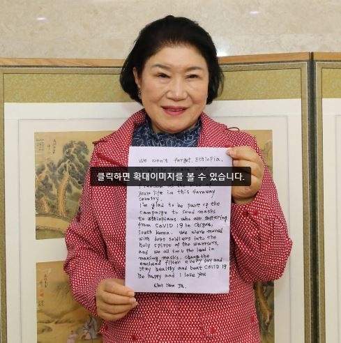 편지에는 참전용사에 희생과 헌신을 잊지 않겠다는 감사의 마음과 주민들과 함께 제작한 필터 교체형 면 마스크 사용법이 적혀있다. 칠곡 할매의 특별한 손편지는 6월 초 주한 에티오피아 대사관을 통해 마스크와 함께 참전용사에게 전달될 예정이다.